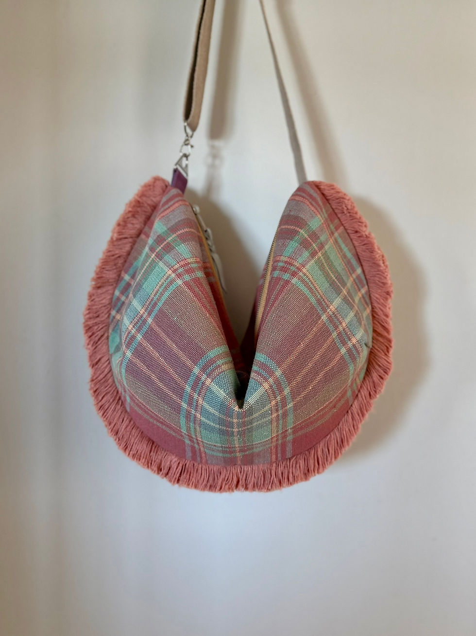 Handmade with reclaimed Italian wool remnants and pink corduroy